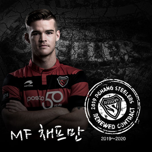 포항스틸러스가 호주 출신 수비형 미드필더 채프만과 재계약을 맺었다고 25일 밝혔다. 계약기간은 2년이다.
