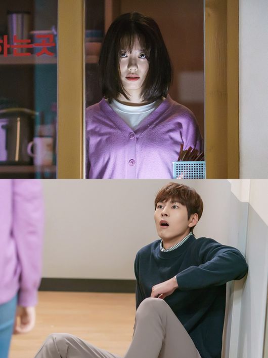 또한 바닥에 주저앉은 박선호의 한없이 확장된 동공과 입을 통해 그가 느끼고 있는 극한의 무서움을 엿볼 수 있다. 특히 사진 끝에 걸쳐진 연보랏빛 옷을 통해 그의 시선 끝에 있는 인물이 김소혜임을 추측할 수 있어 흥미진진함을 안기고 있다.