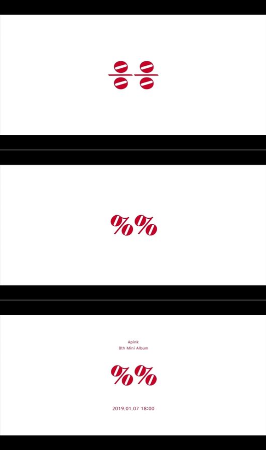 5초 가량의 티저에는 의문의 로고가 등장해 이목을 집중시켰다. ‘응응’이라는 글자에서 ‘%%’로 변화하며 신곡명을 암시하는 듯한 로고가 베일에 싸여있는 신보에 대한 궁금증을 자극했다. 또 함께 공개된 ‘Apink 8th Mini Album [PERCENT]’와 ‘2019.01.07 18:00’라는 문구가 음반의 형태와 음반명, 발매 일자를 드러냈다.