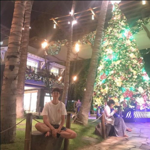 최우식이 글과 함께 올린 사진 속에는 짧은 셔츠를 입고 크리스마스트리를 배경으로 환한 미소를 짓고 있다.