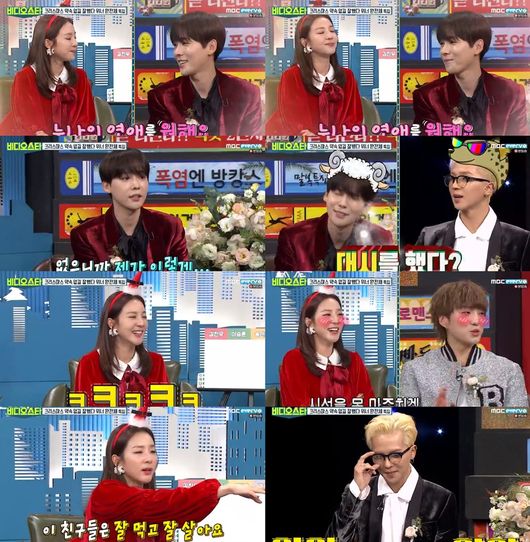 강승윤과도 친분이 있다고 입을 맞춘 사이라고. 강승윤은 "웹드라마를 같이 찍게 됐다. 남주이고 여주였다. 플라토닉 러브를 지향해달라고 했는데 현장에서 감독님이 감정선을 위해 한번은 들어가야한다고 해서 뽀뽀신이 있었다"고 설명했다.