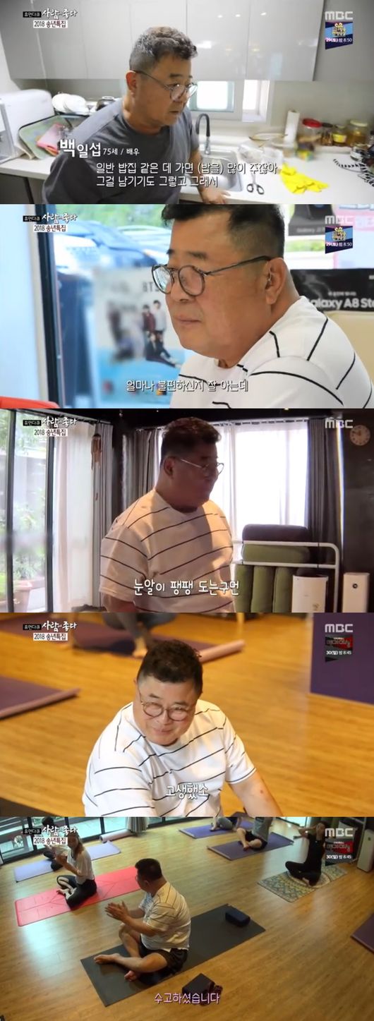 이어 아들 승우와의 시간이 더 많아졌다고 했다. 혼자사는 아버지가 눈에 밟혀 매니저 역을 자처한 아들, 덕분에 혼자 밥먹는 일도 없어지고 부자사이의 어색함도 한결 사라졌다고 했다. 이제라도 아버지와 아들이 서로 알아갈 수 있어 다행이라고 했다. 백일섭은 "2018년 지나면 더 괜찮아질 것"이라면서 "건강하게 새롭게 출발하는 기분으로, 활발하게 살고 싶다, 여러분도 행복한 가정이 되길 바란다"고 인사를 전했다.