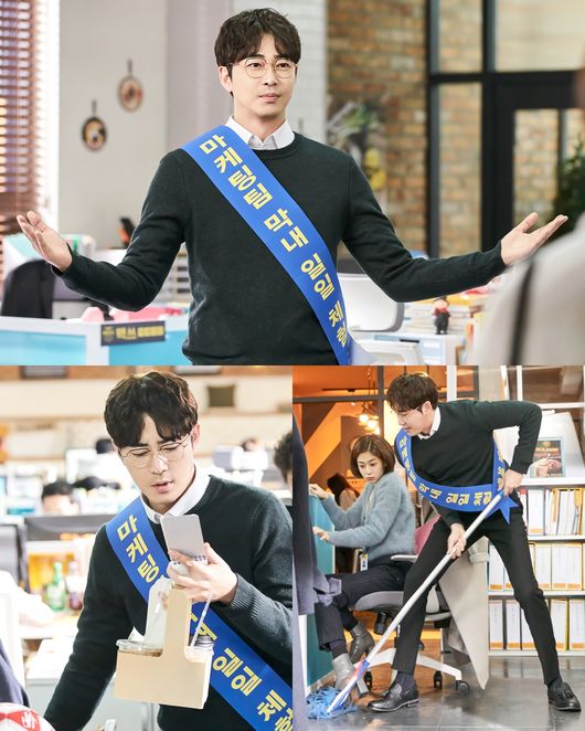 막내로 변신한 백진상이 팀원들의 커피심부름을 손수 하는 것은 물론, 직접 대걸레질로 사무실 곳곳을 청소하고 있어 그의 굴욕적인(?) 순간이 폭소를 일으키고 있다. 왠지 모르게 여유로워 보이는 백진상과 달리 안절부절 못하는 이루다의 온도차 역시 안방극장을 빵 터지게 만들 유쾌한 에피소드를 예감케 한다.