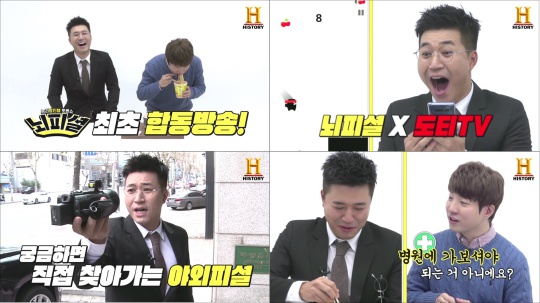 히스토리 웹예능 ‘뇌피셜’에서 김종민이 유튜브 245만 구독자를 보유한 ‘도티 TV’의 도티를 직접 찾아가 첫 합동 방송을 진행한다. 김종민이 처음으로 야외 촬영에 도전한 이번‘야외피셜’ 특집에서는, 두 사람의 온라인게임부터 복불복까지 도티와의 특급 케미를 자랑할 예정. ‘뇌피셜’은 팬들의 성원에 힘입어 오늘(26일)부터 매주 수요일 오후 5시로 공개 시간을 변경해 하루 일찍 시청자들과 만난다.