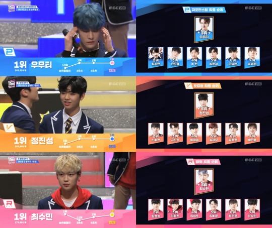 2위는 방준혁이 차지했다. 방준혁은 순위 결정전 당시 ‘반전 랩’을 보여주며 시선을 끌었다. 훈훈한 외모와 랩 실력, 뛰어난 퍼포먼스와 애교까지 갖춘 방준혁은 ‘포지션 대결’에서 댄스 브레이크도 선보이며 다양한 매력을 뽐냈다.