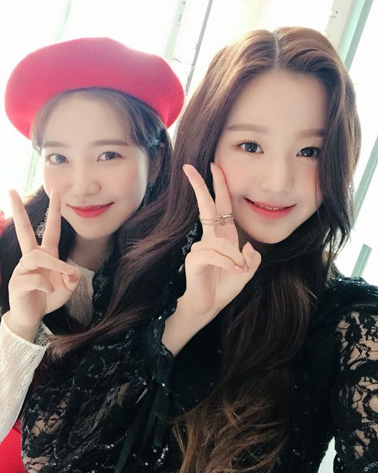 장원영은 26일 아이즈원 공식 SNS를 통해 "촬영 끝나구 정말 좋아하던 예리선배님과 사진 찍었습니다!! 빠뽜빠뽬 넘나 행복한 것.."이라는 글과 함께 사진을 게재했다.