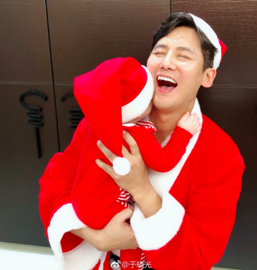사진 속에는 우효광이 산타 옷을 입은 채 아들을 안고 있다. 특히 우효광의 환한 미소와 아들의 귀여운 산타복장이 시선을 사로잡는다.