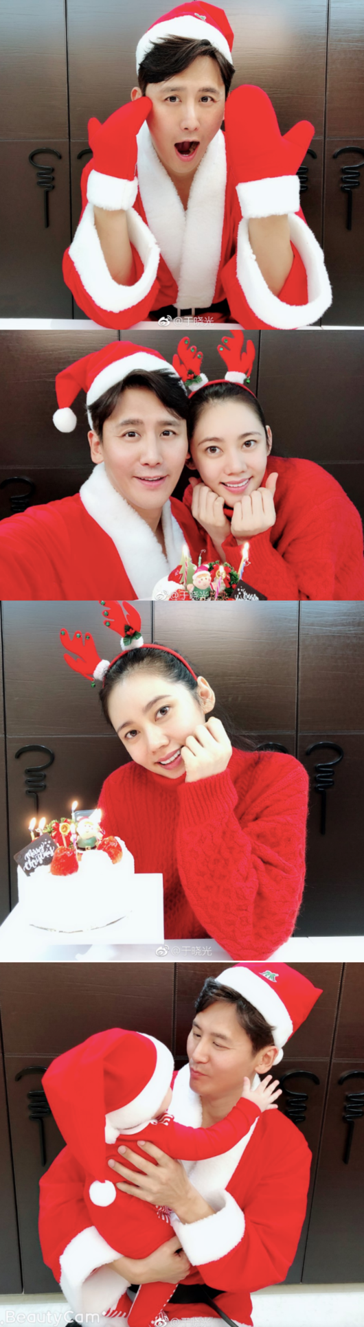 우효광은 지난 25일 자신의 웨이보에 추자현, 아들과 함께 산타 복장을 하고 찍은 사진을 게재했다.