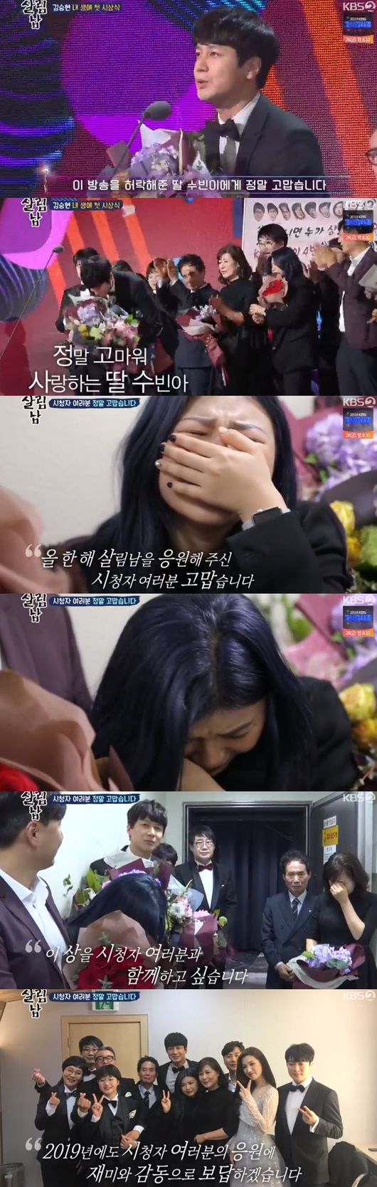 시상식이 진행됐다. 김승현이 우수상을 수상했다. 승현이 혜빈과 포옹하며 기쁨을 나눴다. 무대에 함께 오른 김승현의 부모와 수빈이 눈물을 흘렸다.