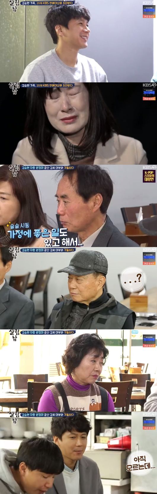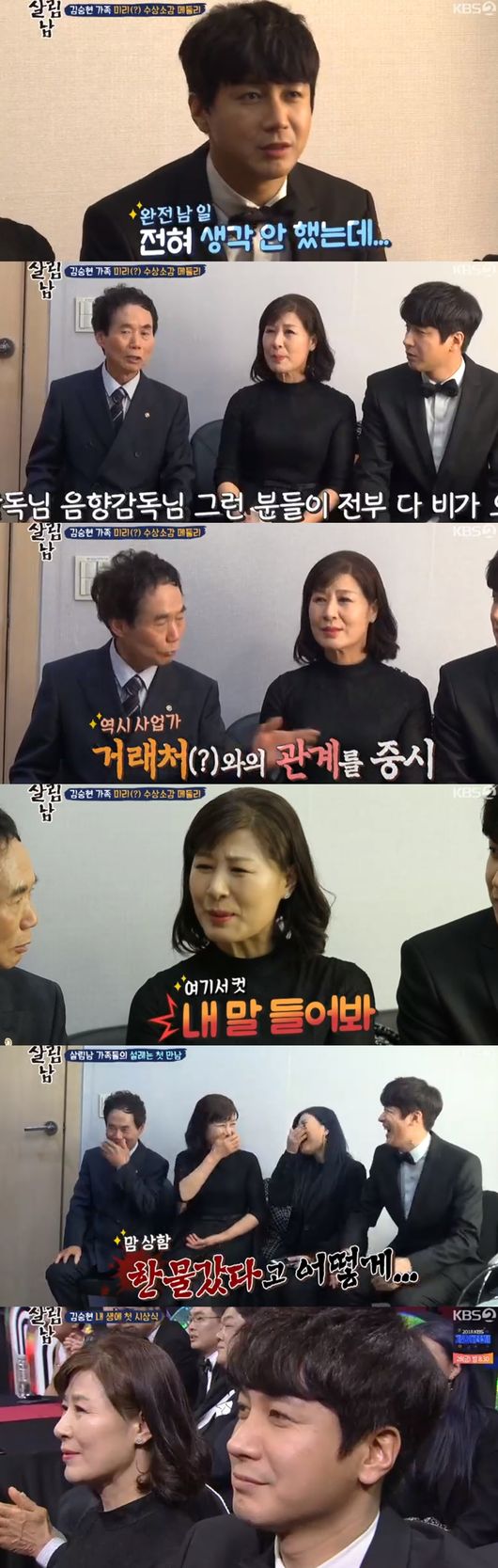 김승현 가족이 큰아버지가 운영하는 식당에 도착했다. 아버지는 "상당히 집안에 좋은 일"이라며 연예대상에 참석한 소식을 전했다. 하지만 큰 아버지가 아무 반응이 없었다. 이에 어머니가 박수를 유도해 웃음을 자아냈다.