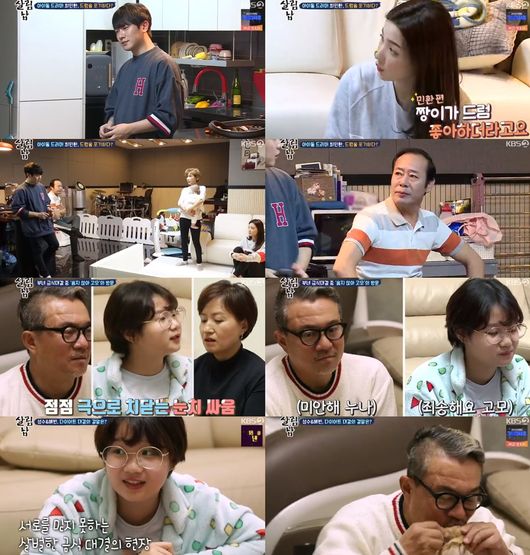 민환이 드럼을 분리해서 1층 부모님 집으로 올라갔다. 부모님은 빠른 아들의 결정에 당황했다. 드럼은 부모님 집 거실에 설치됐다.