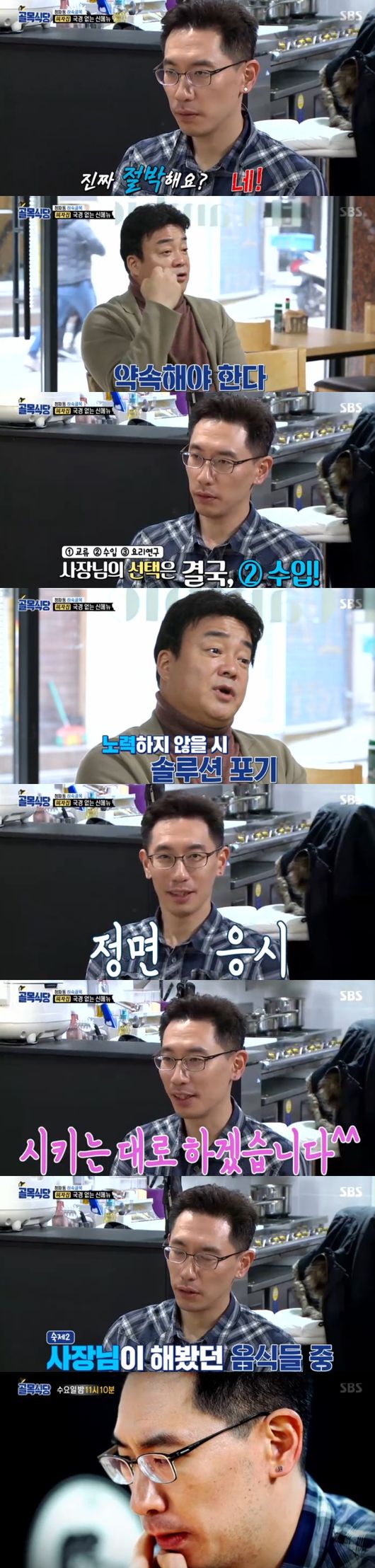 백종원은 숙제를 줬음에도 메뉴 연구 안하고 3일동안 연구보단 취미활동을 했던 사장을 지적했다. "지난 일주일 절실함이 느낄 수 없었다"며 절실함이 보이지 않는다고 했다. 그러면서 "진짜 절박하냐"고 다시 질문, 그는 "돈 벌어서 프랑스 요리학교 다시 수료할 것, 돈이 없어서 그만 둔 것"이라고 했다.