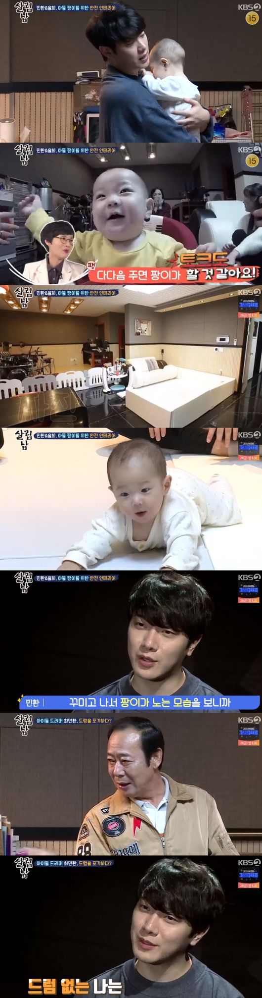 민환은 아끼던 피규어를 모두 정리했다. 피규어를 떠나보내면서 아쉬움 가득한 모습이었다. 매트가 설치됐고 아들 짱이가 매트 위에서 마음껏 돌아다녔다.