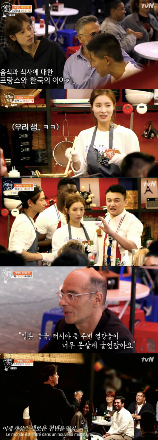 지난 26일 오후 방송된 tvN ‘국경없는 포차’에선 프랑스 파리 포차에 정준영, 로랑 방, 베르나르 베르베르 등이 손님으로 찾았다.