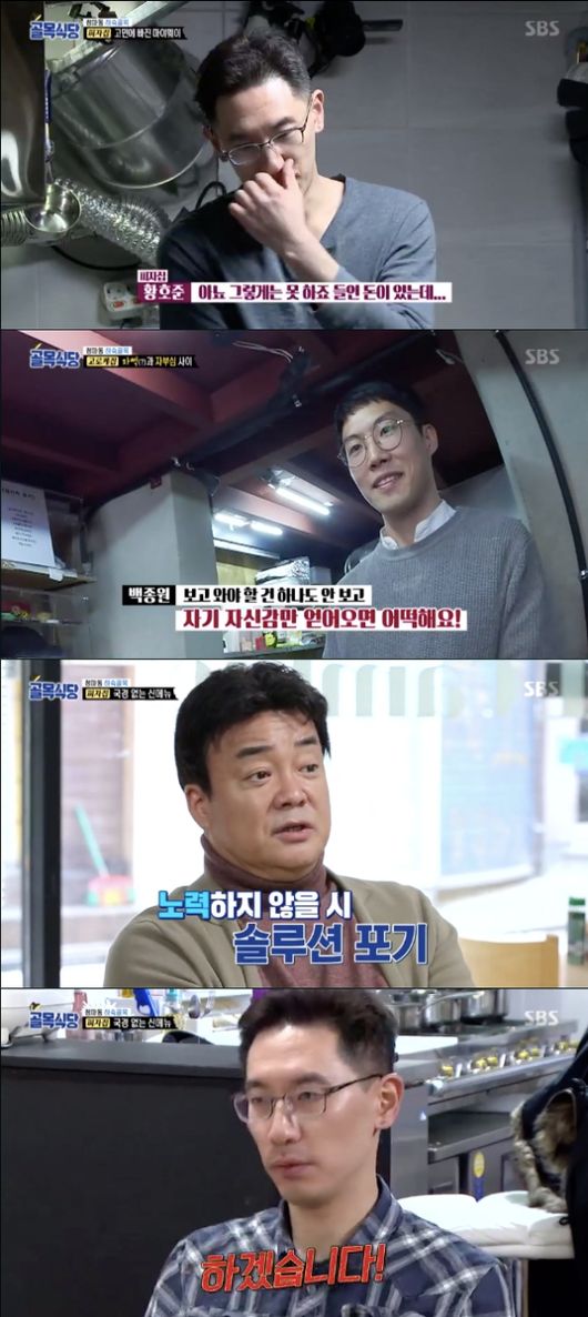 하지만 그는 각종 모임과 대회에 나가느라 시간을 허비했다. 백종원에게 지적받은 의자는 치우지 않았고, 시종일관 변명을 늘어놨다. 피자를 만들겠다는 생각도 일찌감치 버렸다. 자신있게 만들 수 있는 음식을 내놓으라고 했지만, 그는 새로운 음식을 만드는데만 2시간 가까이 시간을 소비했다.