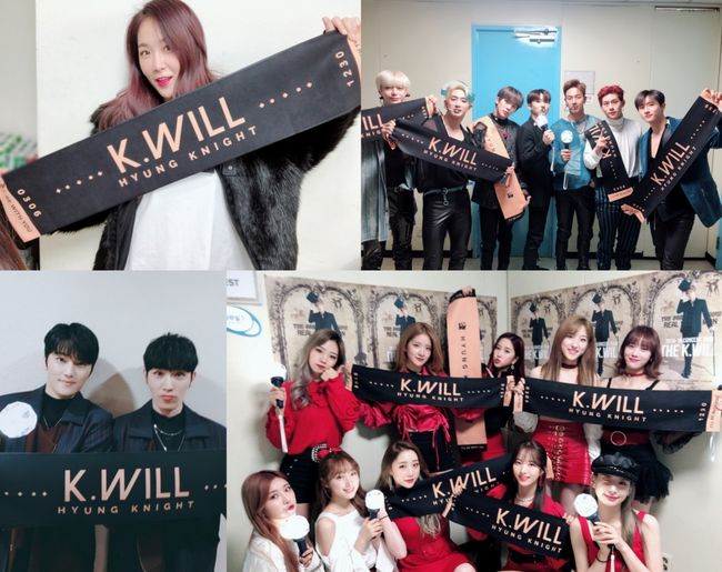 공개된 사진에는 소유, 몬스타엑스, 듀에토, 우주소녀가 각각 케이윌의 콘서트 슬로건과 응원봉을 들고 밝게 웃는 모습을 드러내 보는 이들의 이목을 집중시켰다.