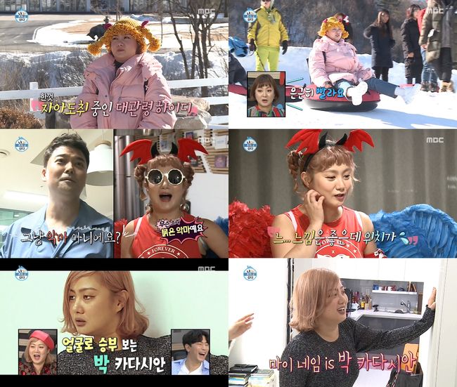 생애 첫 혼자 패키지 여행을 위해 대관령으로 떠난 박나래는 아름다운 풍경과 어울리는(?) 핑크색 롱패딩과 노란 양갈래 모자로 마치 하이디를 연상케 하는 패션으로 단숨에 시선을 강탈했다. 특히 사랑스러움을 한껏 더 업그레이드 시켜주는 금발 모자와 함께한 폭소만발 여행기는 그녀를 대관령 하이디로 등극시키며 또 하나의 레전드 캐릭터를 만들어냈다.
