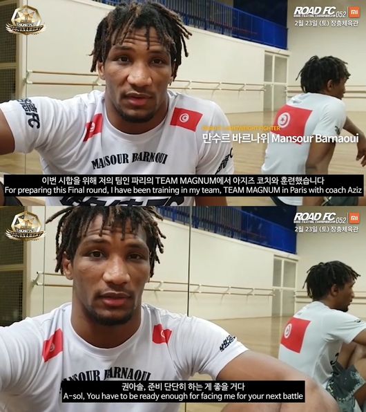 덧붙여 만수르 바르나위는 “(권아솔에 대해서는) 잘 모릅니다. 어떤 스타일인지도 모릅니다. ROAD FC 라이트급 벨트를 그가 갖고 있다는 게 제가 아는 유일한 정보입니다. 사실 그와의 경기가 이번 토너먼트에서 제일 어려운 부분이 아닙니다. 이번 파이널 매치가 권아솔 전보다 더 어렵습니다.”라며 권아솔을 자극했다.