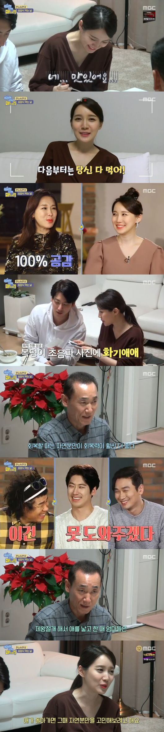 최현상, 이현승 부부가 그려졌다. 이날 시부모님들이 현승을 위해 특별식을 만들기로 한 것. 바로 추어탕이었다. 정성가득한 손길로 보양식을 완성, 하지만 평소 추어탕을 잘 먹지 못했던 현승은 긴장했다. 시아버지는 그런 현승을 배려해 추어탕을 더 곱게 갈았다. 시부모님의 사랑과 정성이 담긴 보양식 밥상이 정갈하게 차려졌다. 현승은 그런 시부모님의 정성을 생각해 "맛있다"며 먹으려 노력했다.
