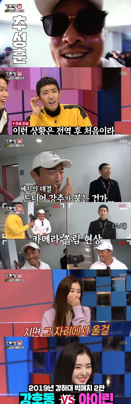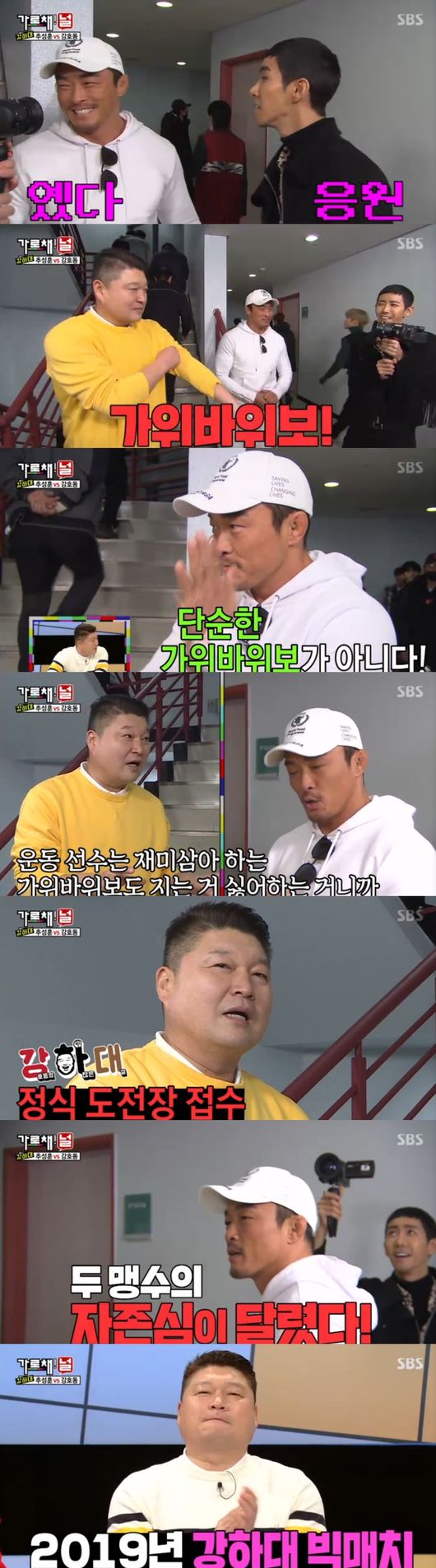 알고보니 추성훈은 광희 제대를 축하하러 잠깐 온 것이었다. 강호동은 즉석에서 추성훈에게 가위바위보라도 대결을 제안, '강하대' 빅매치가 성사됐다. 하지만 강호동이 가위바위보를 이겼고, 추성훈은 "2019년에 승부보자"고 급 제안, 빅매치를 예고했다. 게다가 녹화 장에서 아이린까지 승부욕을 보이며 예리한 가위바위보 대결을 보였고, 즉석에서 두번째 빅매치가 예고됐다.