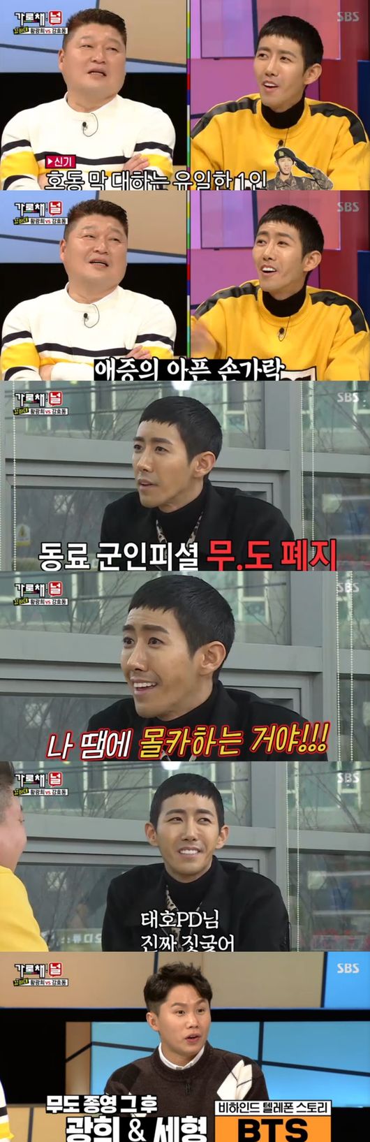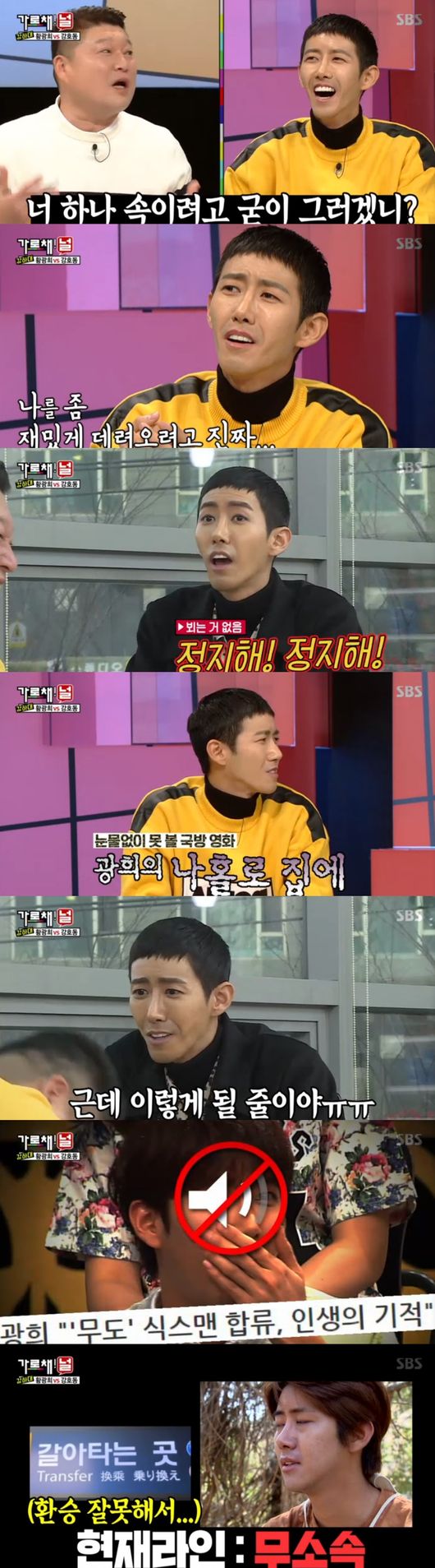 황광희 이후, 강호동이 등장했다. 2년만에 첫 만나 어색한 모습을 보였다. 요즘 예능에 대해 강호동은 디테일하게 설명했다. 강호동은 "헤어진 연인인데 깔끔하게 헤어지지 않은 느낌"이라고 말했고, 광희는 "반갑긴 한데, 진정으로 보고싶은 사람은 형이 아니다"라면서 "호동이 형도 날 아쉬워하지 않는다"고 말해 웃음을 안겼다.