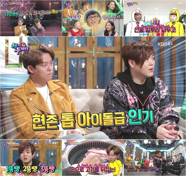 27일 방송된 KBS 2TV ‘해피투게더4’(이하 ‘해투4’)에는 H.O.T. 문희준-토니안, 황보, 폴킴, 샘김, 에이프릴 나은과 특별출연한 댄스 신동 ‘어썸 하은’ 나하은이 출연했다.