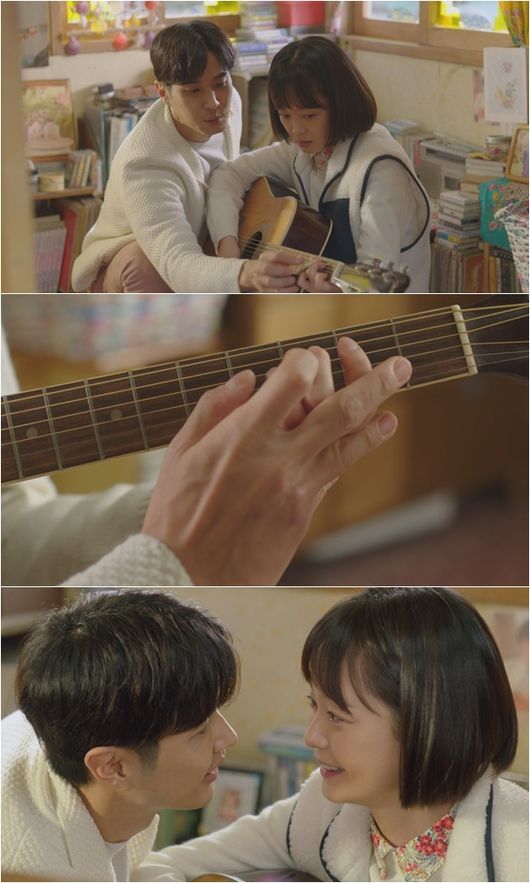 공개된 스틸에는 서로의 숨소리가 들릴 만큼 얼굴을 초밀착하고 마주 앉은 김지석-전소민의 모습이 담겨 보는 이들의 심장마저 떨리게 만든다. 김지석은 전소민에게 기타 코드 잡는 법을 알려주고 있는데 손키스를 하듯 서로의 손이 겹쳐진 아찔한 스킨십이 시선을 강탈한다. 더욱이 전소민은 예상치 못한 스킨십에 긴장한 듯 김지석의 얼굴조차 못보고 있어 순백커플의 썸이 현재 진행 중이라는 것을 엿보게 한다. 특히 서로를 향한 묘한 감정이 느껴지는 눈맞춤은 이들의 단짠 로맨스가 더욱 무르익을 것이라는 사실을 보여줘 설렘 지수를 최고조로 높인다.