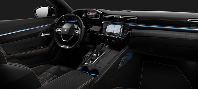 실내는 세련되고 고급스럽게 진화했다. 마사지 기능이 포함된 고급 나파 레더 시트와 우레탄 소재의 원-피스 대시보드로 고급스러움을 강조했다. 아이-콕핏(i-Cockpit®)도 한 단계 진화해 감각적이고 편리한 주행 환경을 제공한다. 푸조 특유의 콤팩트한 스티어링 휠과 패들 시프트, 디지털 그래픽으로 차량의 정보를 제공하는 12.3인치 헤드업 인스투르먼트 패널, 에어컨과 내비게이션 등 차량의 각종 정보를 확인할 수 있는 10인치 터치 스크린, 전투기 조종석에서 영감을 받은 토글 스위치 등으로 구성됐다.