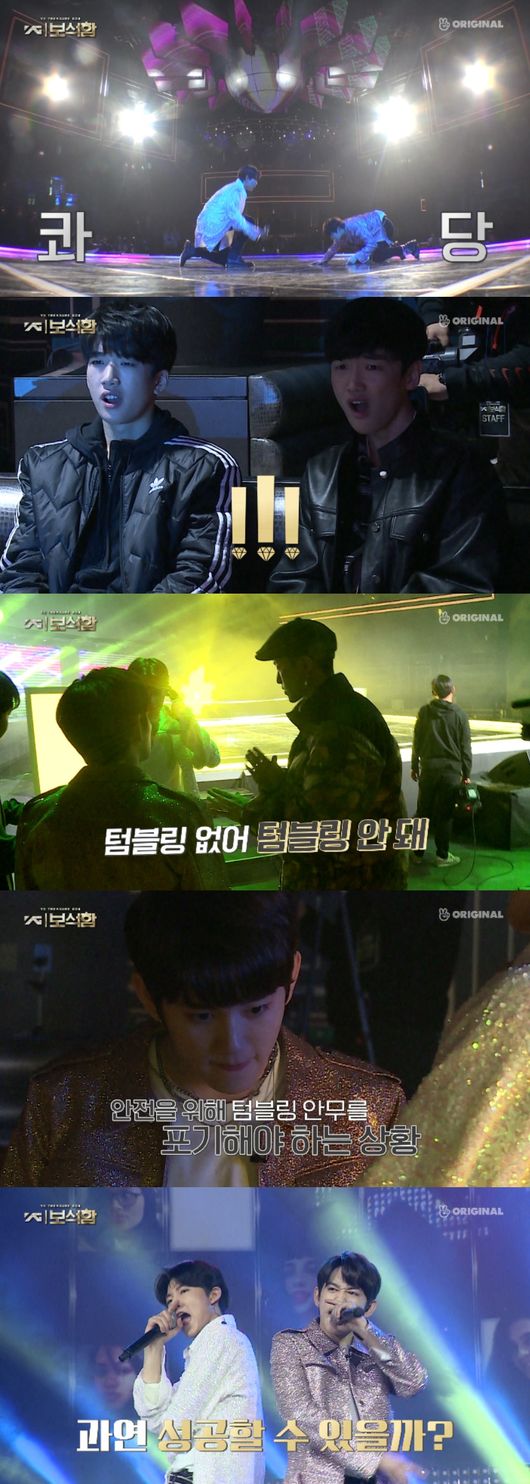 김준규와 마시호 유닛은 ‘2:2 유닛 자리 바꾸기’ 경연을 준비하며 비장의 무기로 백 텀블링을 준비했다. 그러나 리허설에서 백 텀블링을 시도하던 중 마시호는 무릎으로 바닥에 떨어지며 제대로 된 착지를 하지 못했다. 이에 자리한 연습생들을 비롯해 현장 스태프들의 걱정을 샀다.