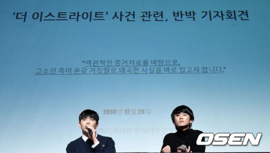 한편 더 이스트라이트 멤버였던 이석철, 이승현 형제는 지난 10월 미디어라인의 문영일 PD로부터 지난 4년간 폭행을 당해왔고, 김창환 회장과 이정현 대표가 이를 묵인하고 폭행을 방조했다고 폭로하고 나섰다. 이에 미디어라인 김창환회장과 더 이스트라이트의 또 다른 멤버인 정사강과 이은성이 기자회견을 열어 "거짓말로 사실을 과장했다"고 반박, 논란이 더욱 커졌다. /mari@osen.co.kr