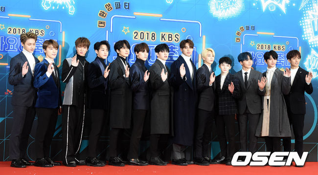 그룹 세븐틴이 28일 오후 서울 여의도 KBS에서 열린 '2018 KBS 가요대축제'에 참석해 레드카펫 행사를 갖고 있다.