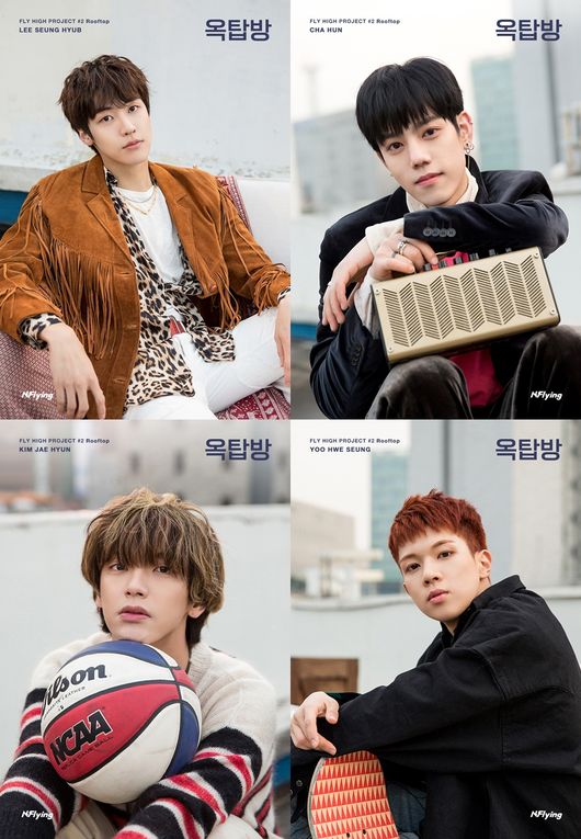 엔플라잉 소속사 FNC엔터테인먼트는 28일 엔플라잉 공식 SNS를 통해 연간 프로젝트 ‘플라이 하이 프로젝트(FLY HIGH PROJECT)’의 두 번째 싱글 타이틀곡 ‘옥탑방’의 개인 콘셉트 포토를 공개했다.