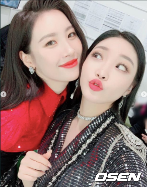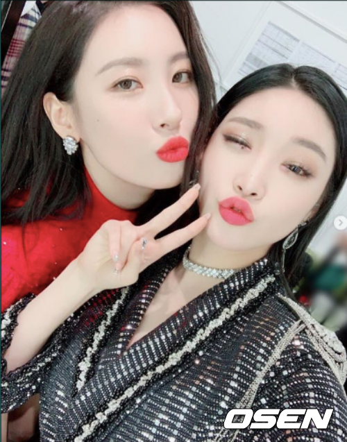 가수 청하와 선미가 다정한 모습을 공개했다.