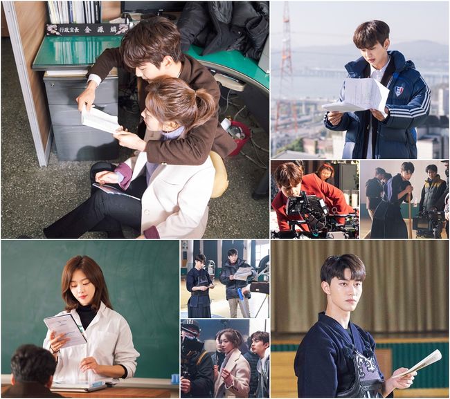 가장 먼저 유승호는 복수를 위해 설송고로 돌아와 첫사랑과 재회하게 된 강복수 역으로 코믹부터 몸을 아끼지 않는 액션, 설렘 폭발 로맨스 연기까지 다방면의 매력을 발산하는 연기를 선보이고 있는 터. 유승호는 ‘백허그 입막음’ 장면에서 상대역인 조보아를 안은 자세로 대본에 몰입하는가 하면, 바닥에 눕는 자세를 불사해가며 모니터를 통해 장면을 꼼꼼히 살피는 모습으로 현장의 열기를 돋우고 있다.