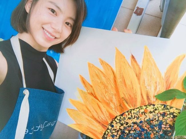사진 속 박수진은 여전히 아름다운 동안 외모를 자랑한다. 우아한 분위기도 돋보인다. 특히 본인이 그린 것으로 추측되는 해바라기 그림 앞에서 포즈를 취한 모습이 화사하다.