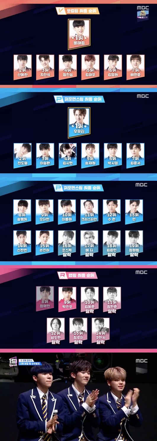 29일 오후 방송된 MBC 오디션 예능 ‘언더나인틴’은 연말 특집으로 예비 아이돌들의 매력을 발견하는 시간을 가졌다. 보컬팀, 랩팀, 퍼포먼스팀으로 나누어 대결을 진행했고 이후 그간의 점수를 합산해 발표하는 자리를 마련했다. 이날 9명이 프로그램을 떠났다.