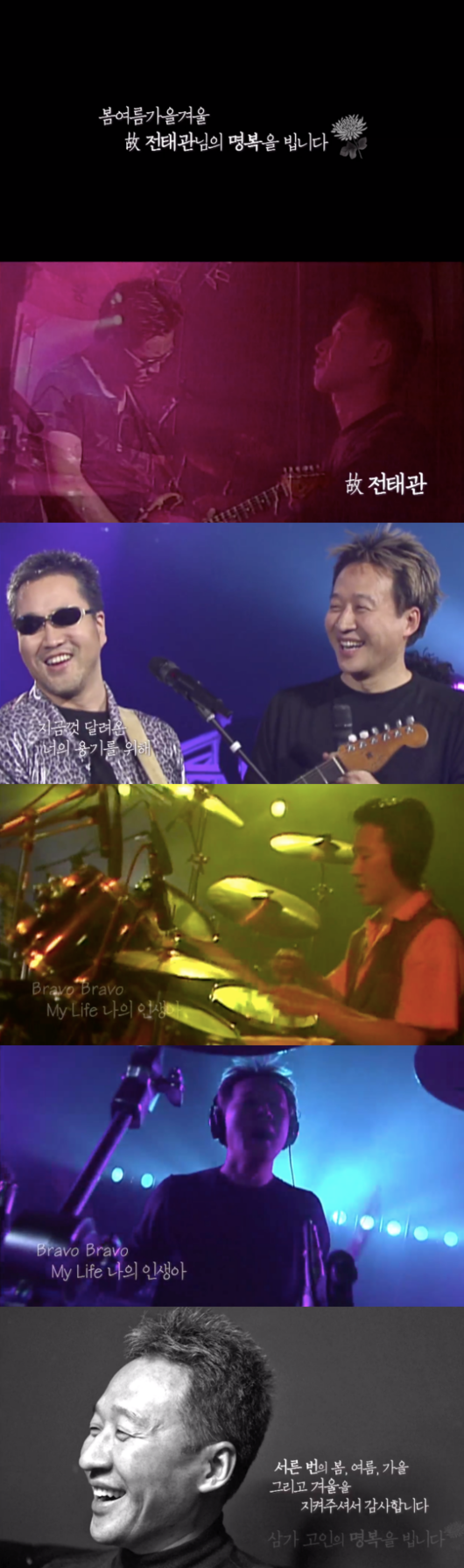 이날 '불후의 명곡'에서는 방송 말미 지난 27일 세상을 떠난 봄여름가을겨울 멤버 전태관을 추모했다. '불후의 명곡' 측은 고 전태관을 추모하며 '서른 번의 봄, 여름, 가을, 그리고 겨울을 지켜주셔서 감사합니다'라는 문구를 더했다. /seon@osen.co.kr