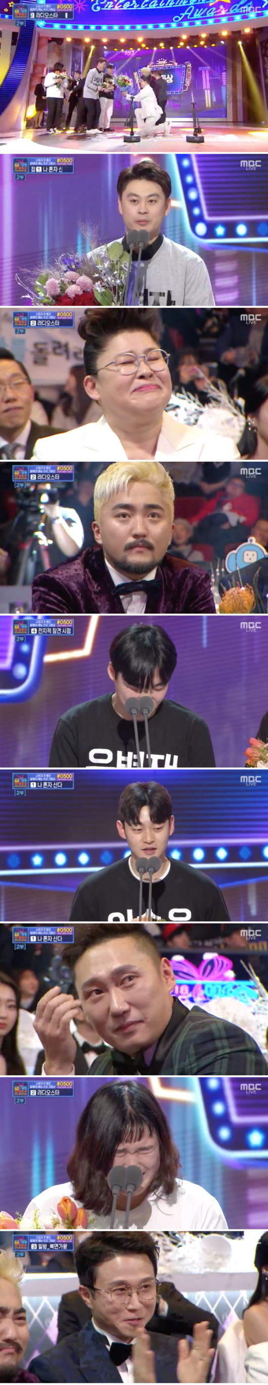29일 오후 서울 마포구 상암 MBC 공개홀에서 열린 ‘2018 MBC 방송연예대상’에서 박성광 매니저 임송, 이영자 매니저 송성호, 이승윤 매니저 강현석, 유병재 매니저 유규선이 인기상의 영예를 안았다.
