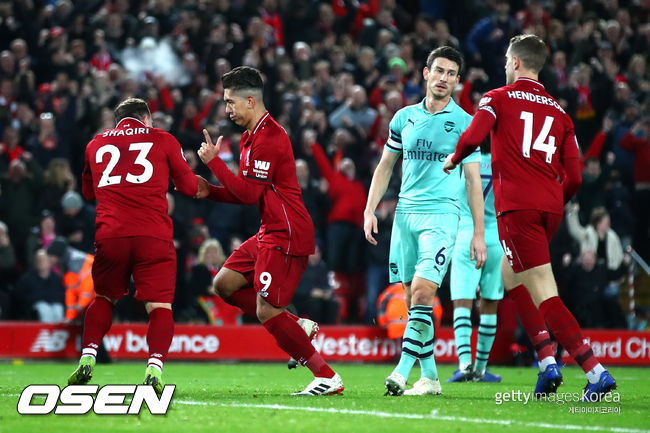 리버풀은 30일(한국시간) 영국 리버풀 안필드에서 열린 아스날과 2018-2019 잉글랜드 프리미어리그(EPL) 20라운드 경기에서 피르미누의 해트트릭을 앞세워 5-1 대승을 거뒀다.