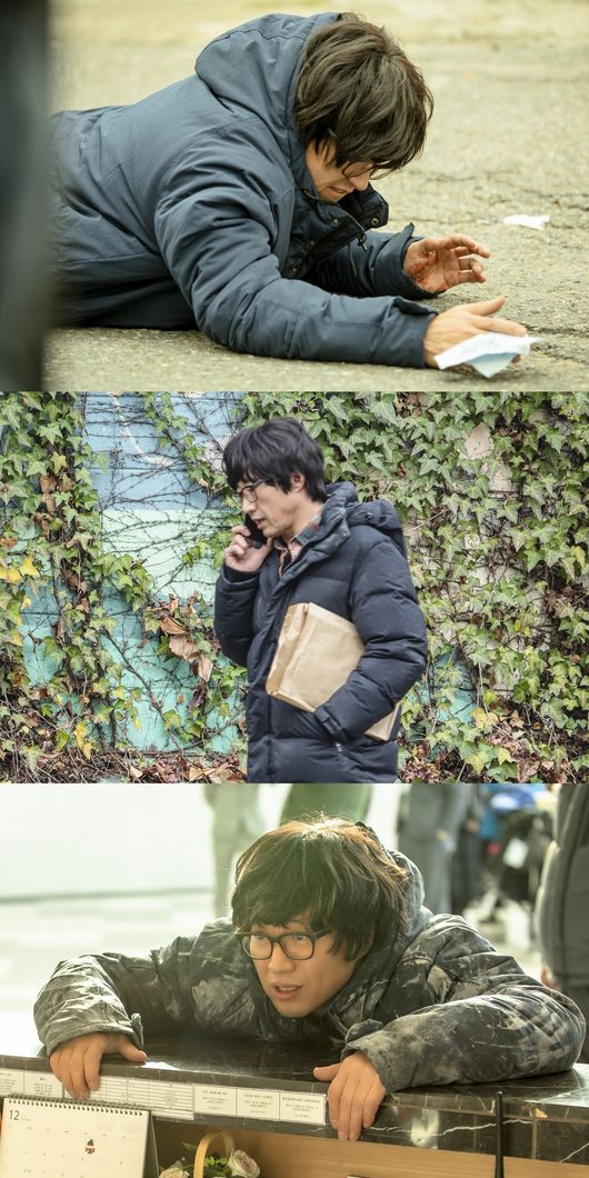 그런가 하면 옆구리에 서류봉투를 낀 채 누군가와 통화를 하는 바쁜 일상도 포착, 여기에 어디 진흙탕이라도 구른 듯 엉망이 된 행색으로 안내데스크에 매달린(?) 모습까지 그만의 방식으로 사건의 진실을 캐내는 조들호의 괴짜 같은 면면도 엿볼 수 있다.