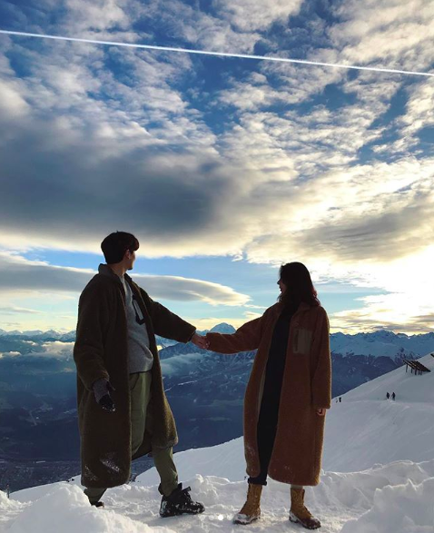 공개된 사진 정겨운은 흰 눈으로 뒤덮인 노르트케테에서 아름다운 하늘을 배경으로 카메라를 바라보며 미소를 짓고 있다. 손을 꼭 잡은 두 사람은 그 누구보다 행복한 표정이다.