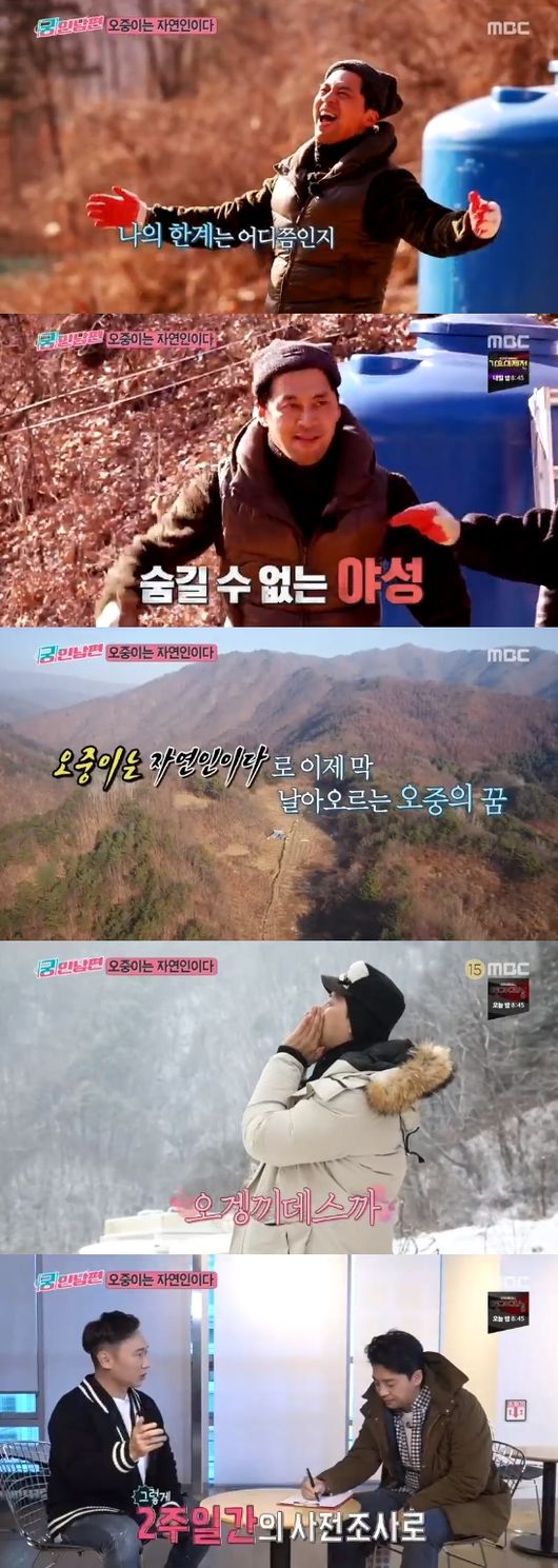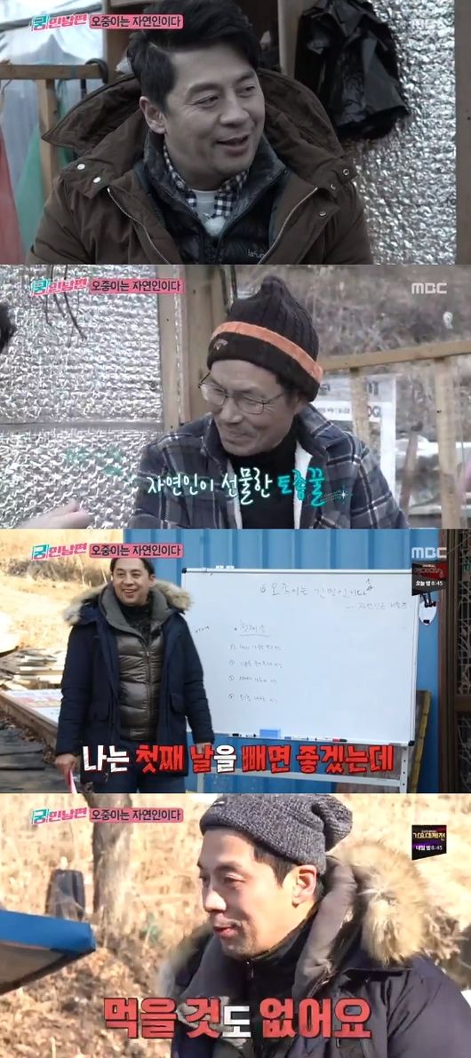'궁민남편' 권오중이 이승윤, 윤택을 잇는 '자연인' 루키로 등장해 재미를 더했다. 1박 2일 자연인 생활에 돌입한 권오중은 완벽한 자연인 생활을 선보일 수 있을까.