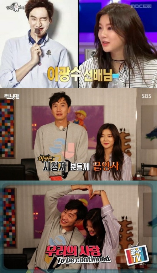 이후 이광수와 이선빈은 그해 SBS 예능 '런닝맨'에서 첫 만남을 가졌고, 이선빈은 이광수 앞에서 설레는 마음을 감추지 못해 핑크빛 기류를 형성했다. 당시 이선빈과 알콩달콩 오락실 데이트를 즐긴 이광수 역시 클로징 장소에서 "우리 오늘부터 사귀기로 했다. 다음 주에 결혼 발표하겠다"고 너스레를 떨어 모두를 놀라게 만들었다.