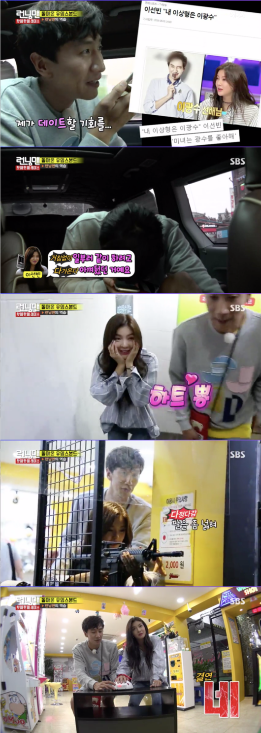 이상형 이광수를 만난 이선빈은 설레 하는 모습을 보였고 이광수는 이선빈을 리드하며 데이트를 이어갔다. 오락실에서 게임을 할 때도 이광수는 이선빈을 이끌었다. 특히 이선빈이 사격게임에서 어려워하자 자연스럽게 스킨십을 하며 달달한 분위기를 연출했다.