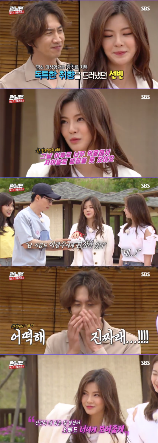 이선빈은 SBS ‘일요일이 좋다-런닝맨’(이하 런닝맨) 출연 전부터 이광수를 향한 애정을 표현한 바. 2016년 MBC ‘황금어장-라디오스타’에 출연해 이광수가 이상형이라고 밝히며 “평소 조용한 연애를 하는 편이 아니다. 티격태격하는 것이 저와 잘 맞을 것 같다”고 고백했다.