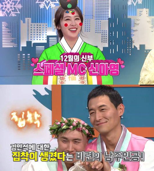 2019년 1월 1일(화) 방송되는 ‘비디오스타’ '부럽! 더럽! 오~럽♬ 특집! 찾았다 내 사랑♬' 편에는 이사강-론 커플과 ‘김빡’으로 더 유명한 개그맨 김인석, 윤성호 커플이 출연했다. 특히 이날에는 결혼 후 다시 한 번 ‘비디오스타’를 찾아온 새신부 신아영이 특별 MC로 함께해 달달함을 한껏 뽐냈다.