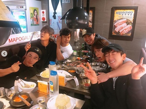 그룹 신화 이민우가 멤버들과 함께한 20주년 회식 사진을 공개했다.