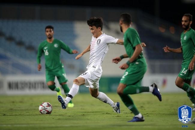 전반 18분 정우영이 사우디 선수와 경합 과정서 쓰러졌으나 금방 그라운드에 복귀했다. 계속 사우디의 강한 압박이 이어졌다. 전반 22분 사우디가 위협적인 크로스를 연결했으나 김민재가 몸을 날려 저지했다. 사우디의 강한 압박이 이어졌다.