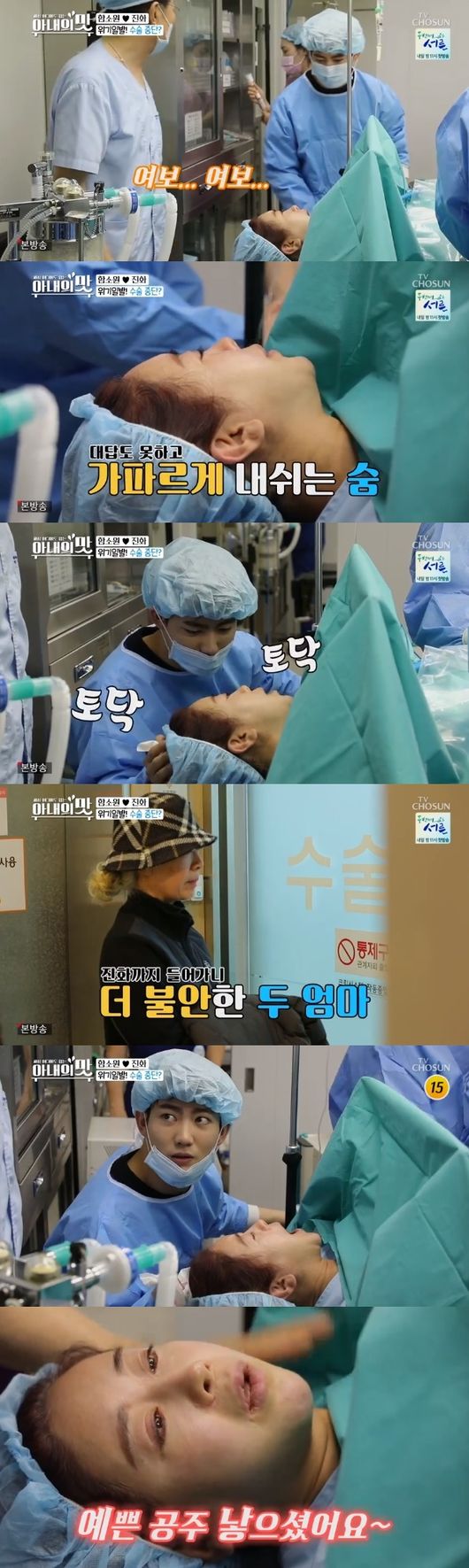남편 진화가 수술실에 들어가 있을 때, 함소원의 친정 어머니와 시어머니는 밖에서 불안한 마음으로 아기가 태어나길 기다렸다.
