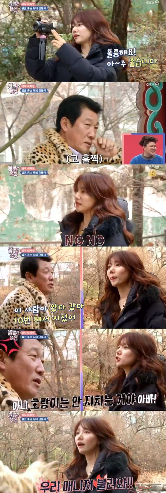 집에서 촬영하다가 급기야 야외 촬영까지 나섰다. 하지만 지나가는 사람들의 시선에 어쩔줄 몰라했다.